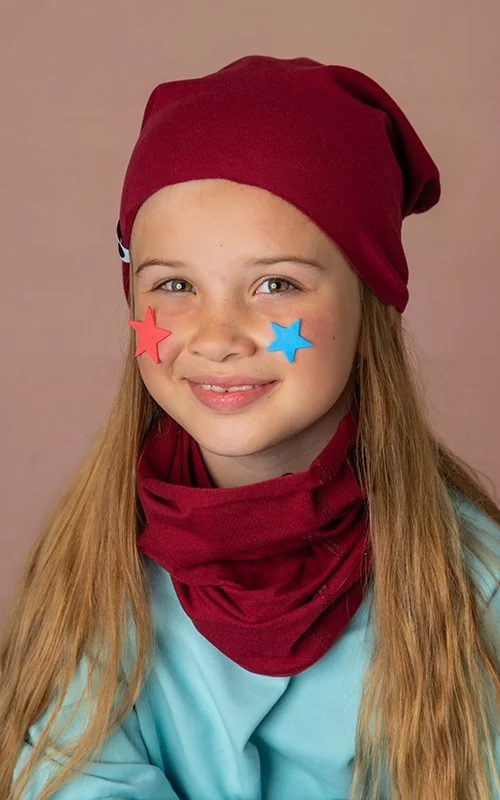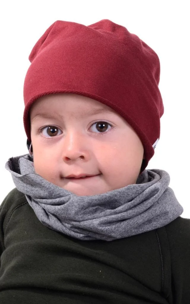 Bavlnená detská čiapka v bordovej farbe. Čiapka je veľmi pohodlná, ideálna na jeseň a na jar. Deti ich milujú!