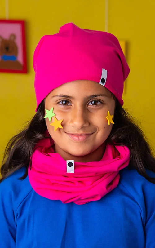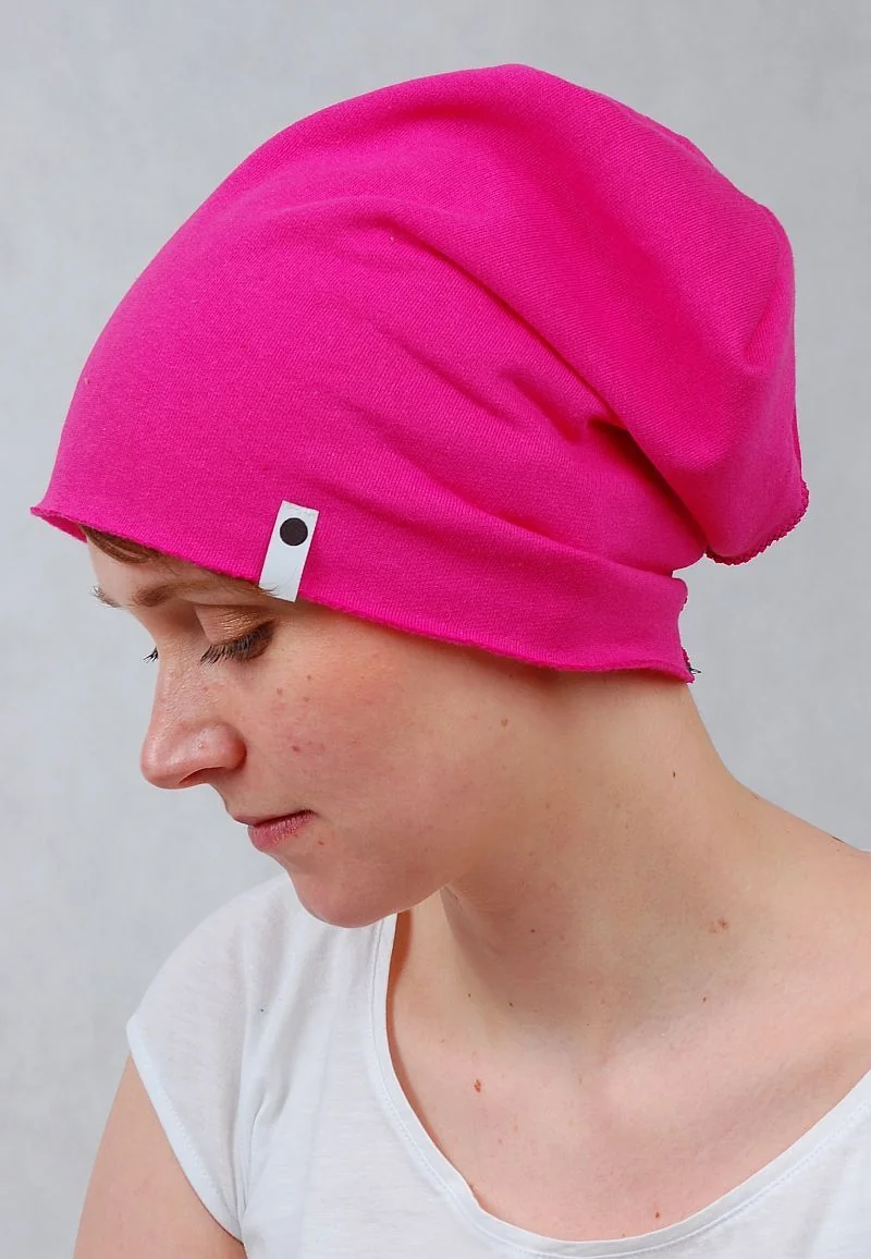 Bavlnená detská čiapka vo fuchsia farbe. Čiapka je veľmi pohodlná, ideálna na jeseň a na jar. Deti ich milujú!