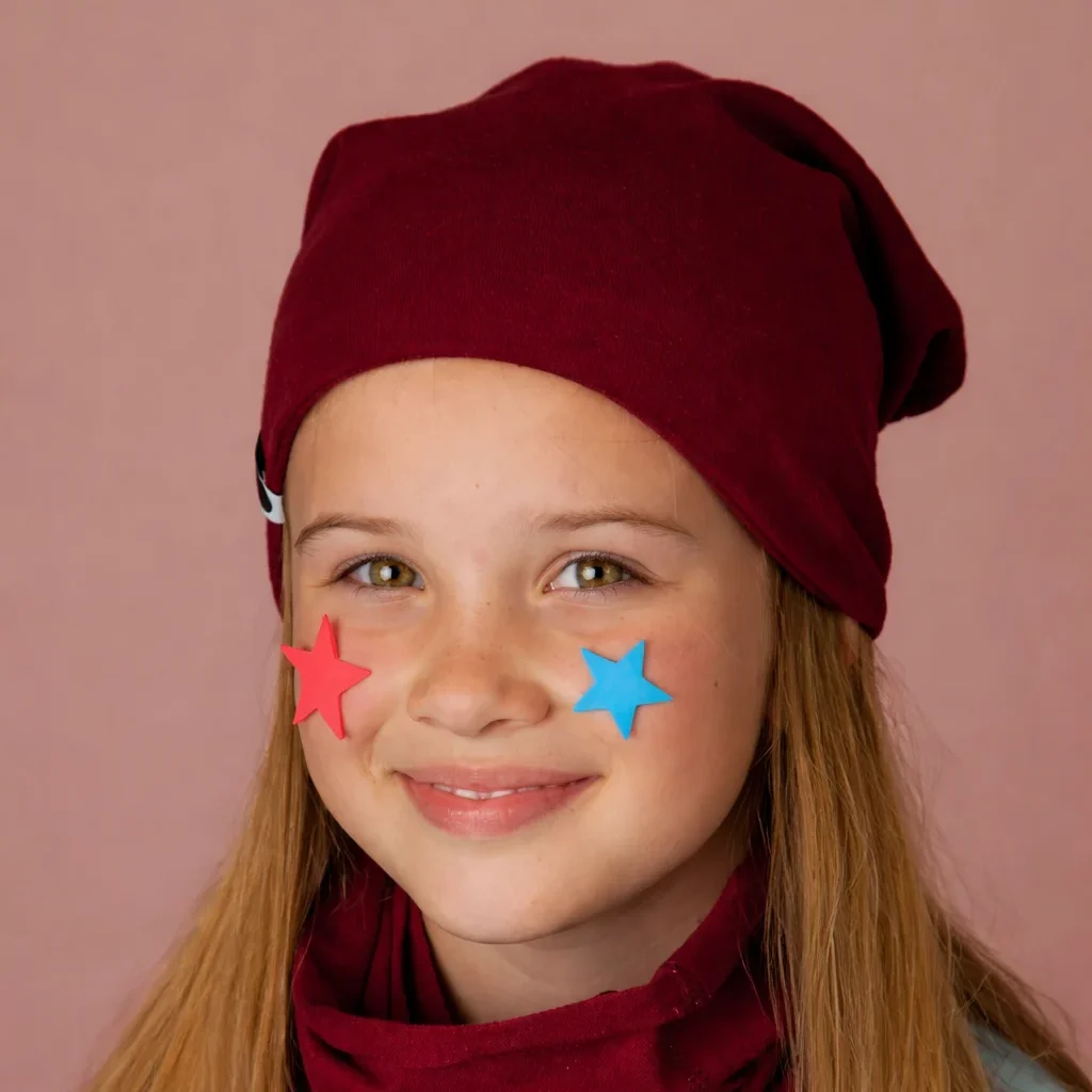 Bavlnená detská čiapka vo vínovej farbe. Čiapka je veľmi pohodlná, ideálna na jeseň a na jar. Deti ich milujú!