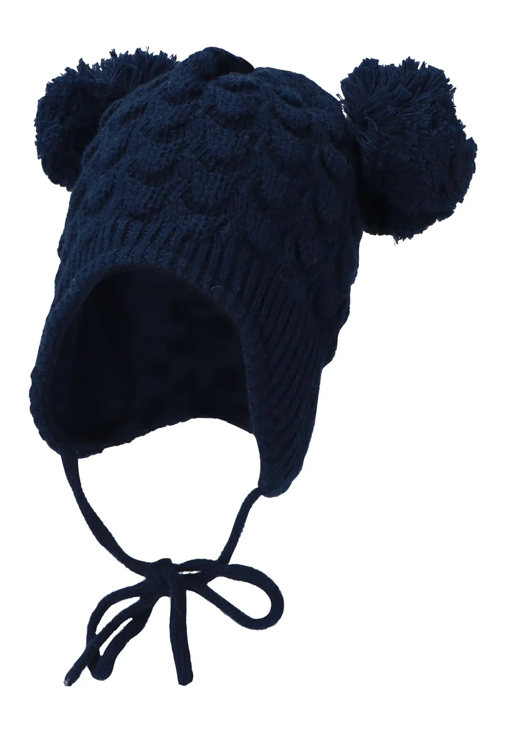 Táto detská čiapočka s pútavým pleteným vzorom s brmbolcami skutočne upúta. Vietor a zima nemajú šancu, pretože čiapka je celá podšitá česanou bavlnou. Dokonale prilieha k hlave a pletené ušné klapky optimálne zakrývajú citlivé uši. Šnúrky poskytujú dodatočnú podporu a zabraňujú zošmyknutiu. Bombuľové čiapky sú klasikou a vždy držia krok s neustále sa meniacimi trendmi!