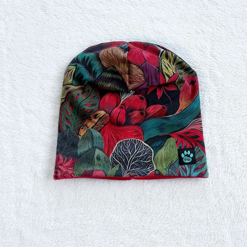 Dvojvrstvová čiapka z dizajnového bavlneného úpletu, podšitá jednofarebným úpletom. Ideálna na jar/jeseň – prípadne v priebehu leta na chladnejšie dni.