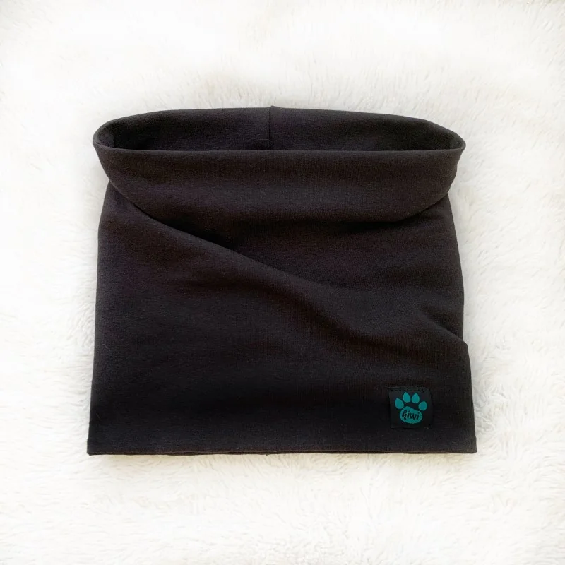 Dvojvrstvový nákrčník (tunel) z dizajnového bavlneného úpletu, podšitý jednofarebným úpletom. Prevlieka sa cez hlavu na jeden krát.