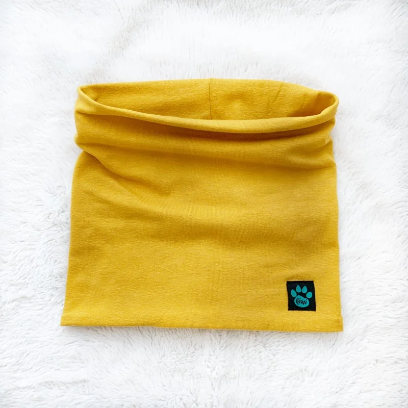 Dvojvrstvový nákrčník (tunel) z dizajnového bavlneného úpletu, podšitý jednofarebným úpletom. Prevlieka sa cez hlavu na jeden krát.