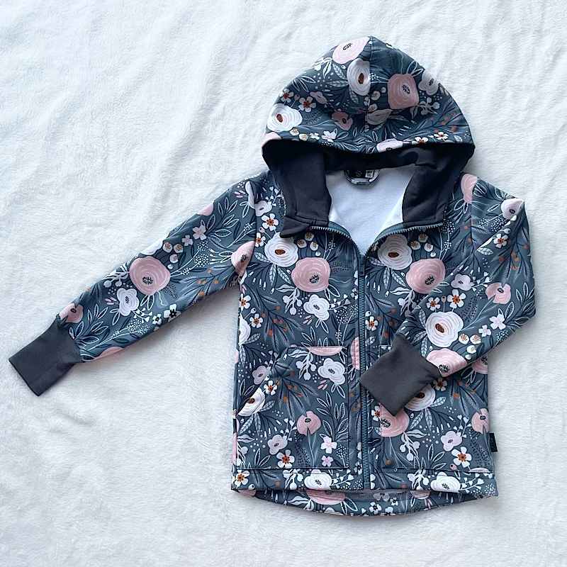 Softshellová bundička zo zimného softshellu vhodná na jar a jeseň – odolná proti vetru, aj dažďu. Bundička je ušitá na zips, má predĺžený zadný diel, ktorým sú chránané kríže detí, kapucňu podšitú z príjemného dizajnového úpletu a pri krku stojáčik, aby nenafúkalo na hrdielko. Na prednej strane nájdete vrecká, ktoré sú dostatočné veľké na ukrytie ručičiek, ale i detských pokladov. Bunda má našité pútko na zavesenie. Konce rukávov sú z bavlnených patentov – dajú sa vyhrnúť, tým sa bundička skráti a neskôr predĺži.
