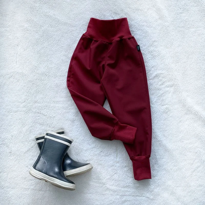 Zateplené softshellové nohavice ušité zo zimného softshellu (z vnútornej strany je materiál zateplený fleecovou vrstvou) – vhodné na sychravé počasie, odolné proti vetru, aj dažďu. Konce nožičiek a pás sú stiahnuté úpletovými nápletmi, ktorými sa dá regulovať dĺžka nohavíc. Nohavice vám teda vydržia niekoľko veľkostí. Zadný diel nohavíc je ešte mierne zvýšený, aby dobre chránil chrbátik, naspodu patent proti prefúknutiu.