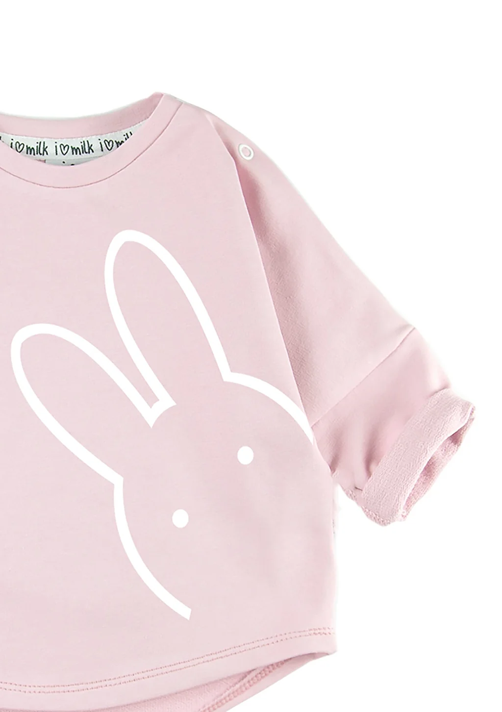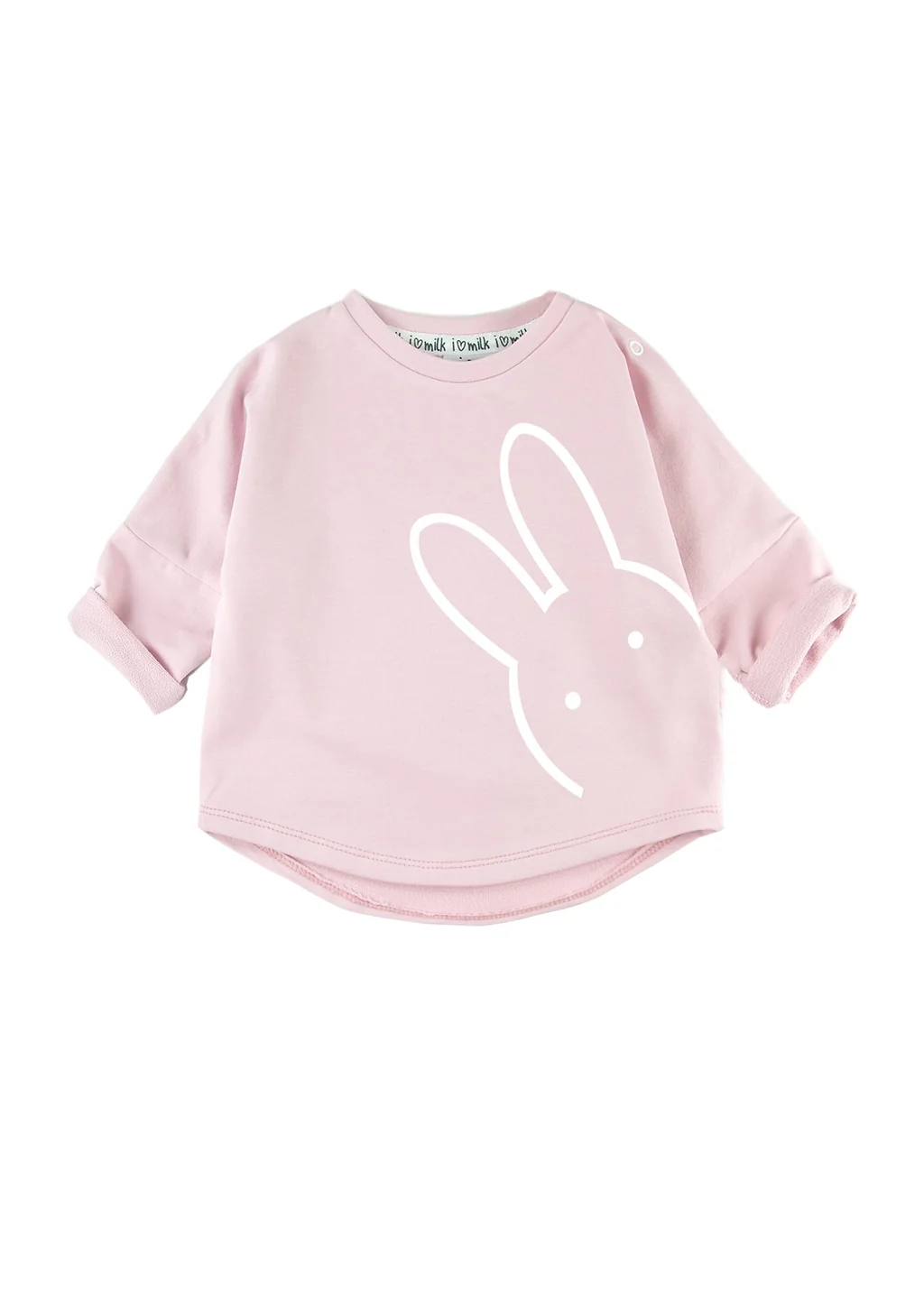 Púdrovo ružová basic detská mikina z certifikovanej bavlny. Univerzálny outfit s roztomilou potlačou králika.