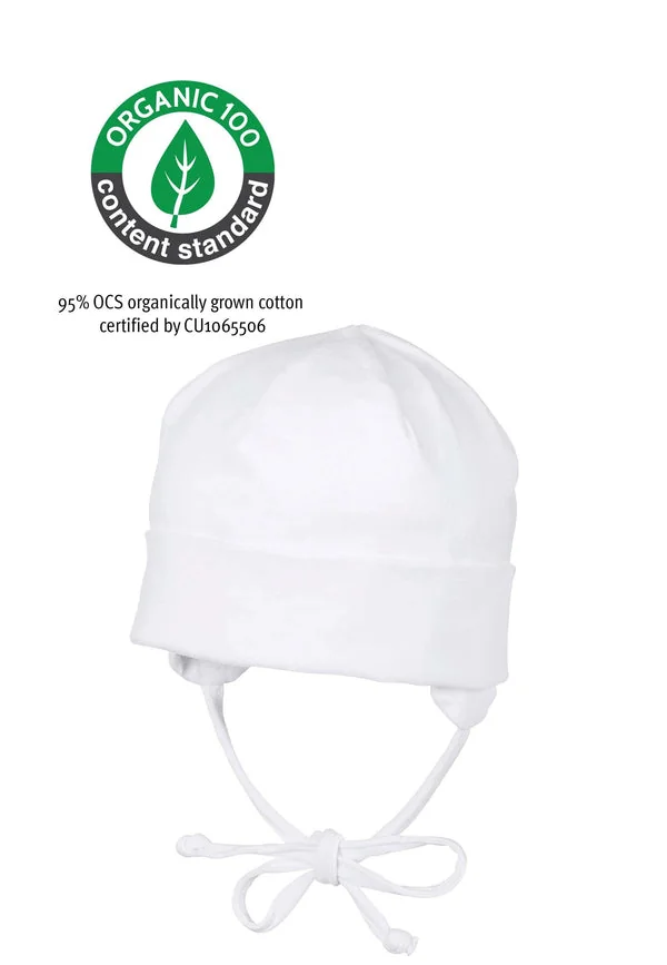 Jednofarebná čiapka vyrobená organickej bavlny jemne prilieha k hlavičke a je mimoriadne pohodlná na nosenie. Tento čiapka je vhodný najmä pre novorodencov. Kvalitný materiál, ploché švy a malé našité klapky na uši chránia jemnú hlavičku a citlivé ušká vášho dieťatka. Vďaka zaväzovaniu čiapka veľmi dobre sedí a nešmýka sa.