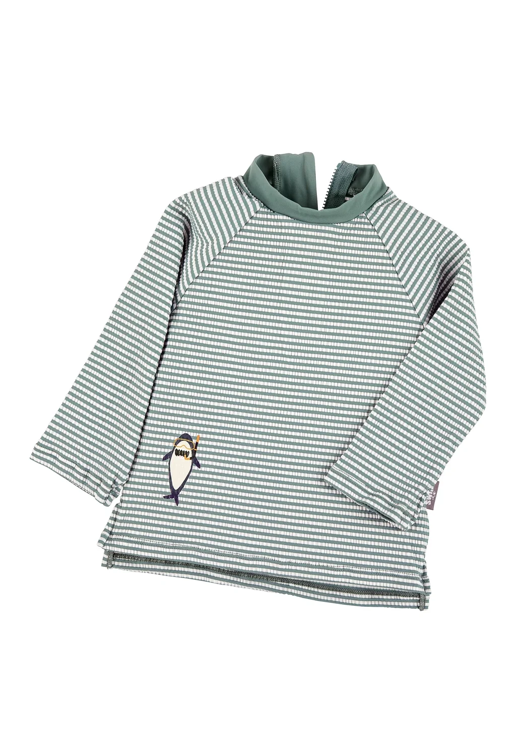 Plavecké tričko s dlhým rukávom vaše dieťa dobre ochráni pri plávaní a hraní vo vode a okolo nej. Látka na plavky s UV ochranou 50+ ! Predný zips uľahčuje obliekanie a vyzliekanie a chránič brady zabraňuje zraneniam v oblasti krku.
