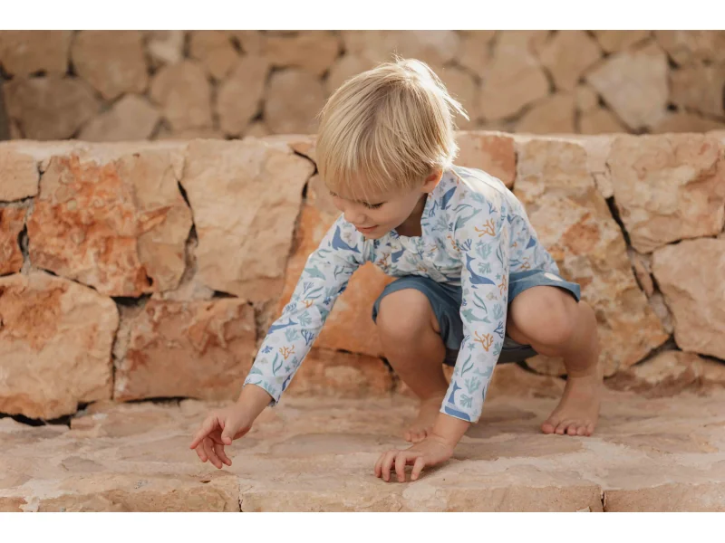 Plavky z UV ochrannej tkaniny s krásnou potlačou chránia vaše dieťa pred slnkom pri kúpaní pri mori aj doma na záhrade. Či už vaše deti milujú skákanie vo vlnách, kúpanie v bazéne alebo si rady stavajú hrady z piesku, v týchto plavkách si môžu bezstarostne užívať celý deň.