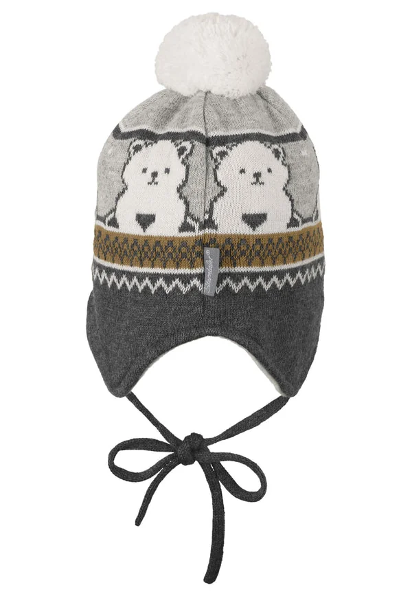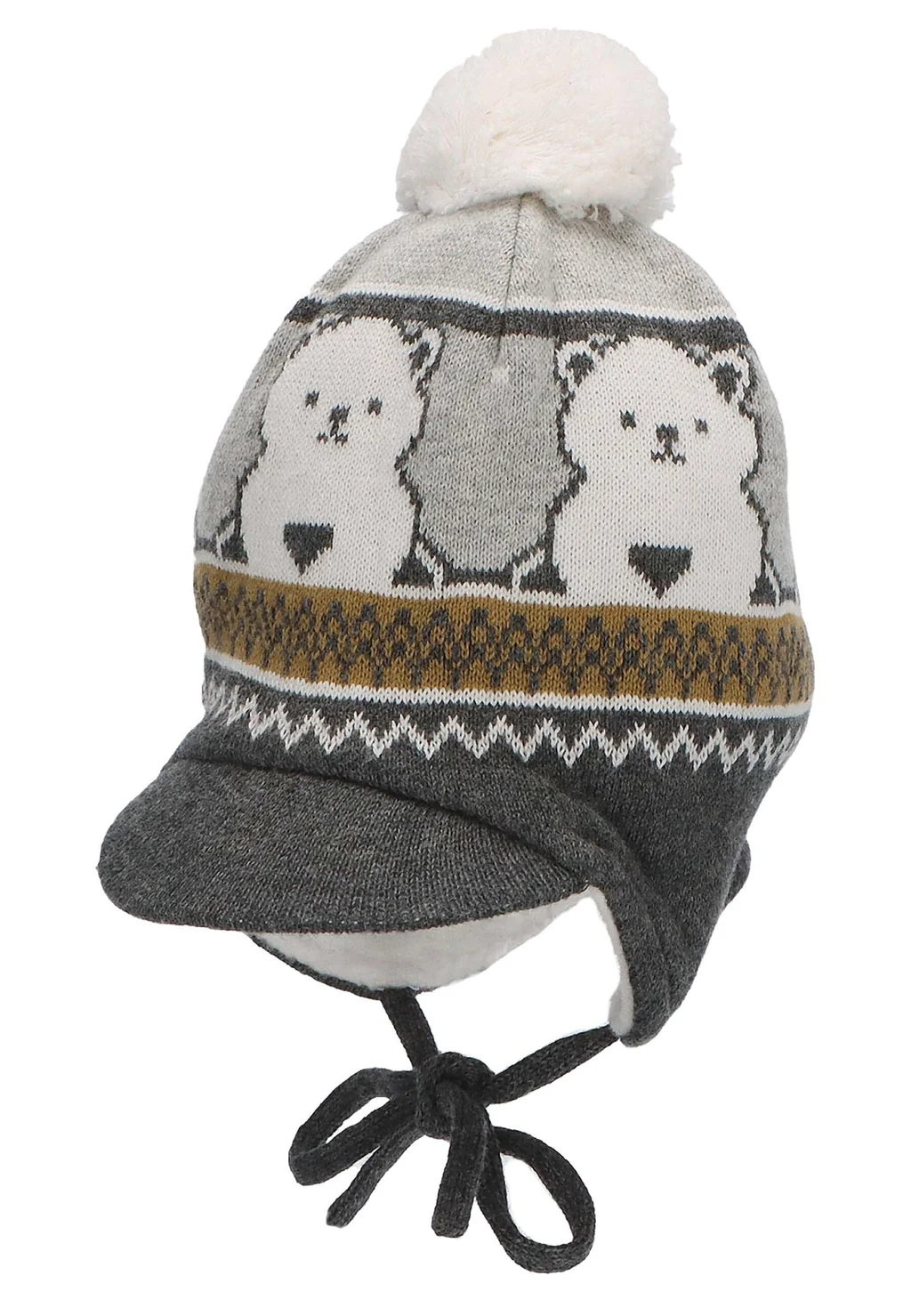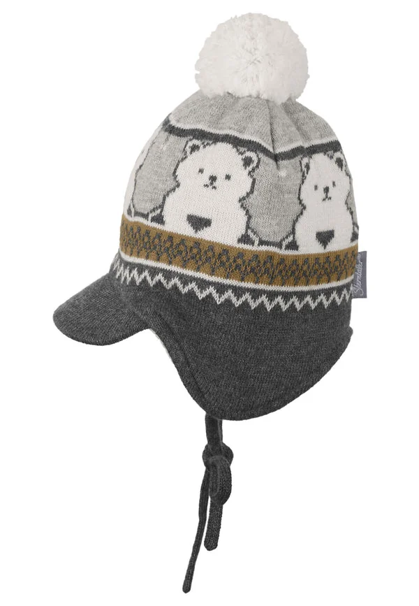 Táto pletená čiapka z bavlny (bio) s roztomilým žakárovým vzorom, malým šiltom a brmbolcom je úžasná a upúta pozornosť. Vietor a zima nemajú šancu, pretože čiapka s malými ľadovými medvedíkmi je celá podšitá bavlneným rúnom (bio). Pletené ušné klapky a šnúrky zaručujú skvelé držanie, dokonale zakrývajú uši a zabraňujú zošmyknutiu. Pletená čiapka má certifikát GOTS – od výrobného reťazca až po dodávku, Global Organic Textile Standard kladie prísne požiadavky na spracovanie textílií vyrobených z certifikovaných organických prírodných vlákien.