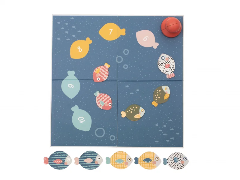 Originálnu magnetickú hru tvorí obojstranná hracia podložka, magnetické ryby a magnetický chytač na ryby. Hra je ideálna pre spoločné hranie dieťaťa s rodičmi, prinesie vám veľa spoločnej zábavy a zároveň vám umožní učiť dieťa zábavnou formou rozpoznávať farby, tvary aj čísla.