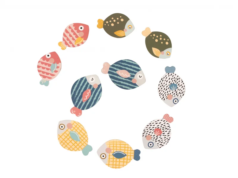 - od 12 mesiacov: Rozložte ryby na hracej ploche a nechajte dieťa, aby ich zbieralo pomocou magnetického chytača. Oddelenie rybičky od chytača učí dieťa koordináciu používania oboch rúk.