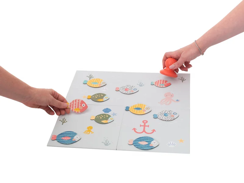 - od 24 mesiacov: Pokladajte spolu s vašim dieťaťom ryby na hraciu plochu podľa farieb a veľkostí, nechajte ho loviť ryby magnetickým chytačom od najväčších po malé či podľa číselného poradia. Dieťa sa počas hry učí poznávať veľkosti, farby aj čísla.